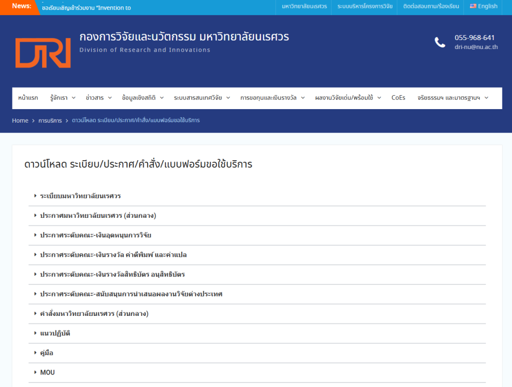 1.ประกาศมหาวิทยาลัยนเรศวร เรื่อง หลักเกณฑ์การรับทุนสนับสนุนค่าตีพิมพ์และรางวัลตีพิมพ์บทความวิชาการ คณะสหเวชศาสตร์ ลงวันที่ 30 กรกฎาคม 2562