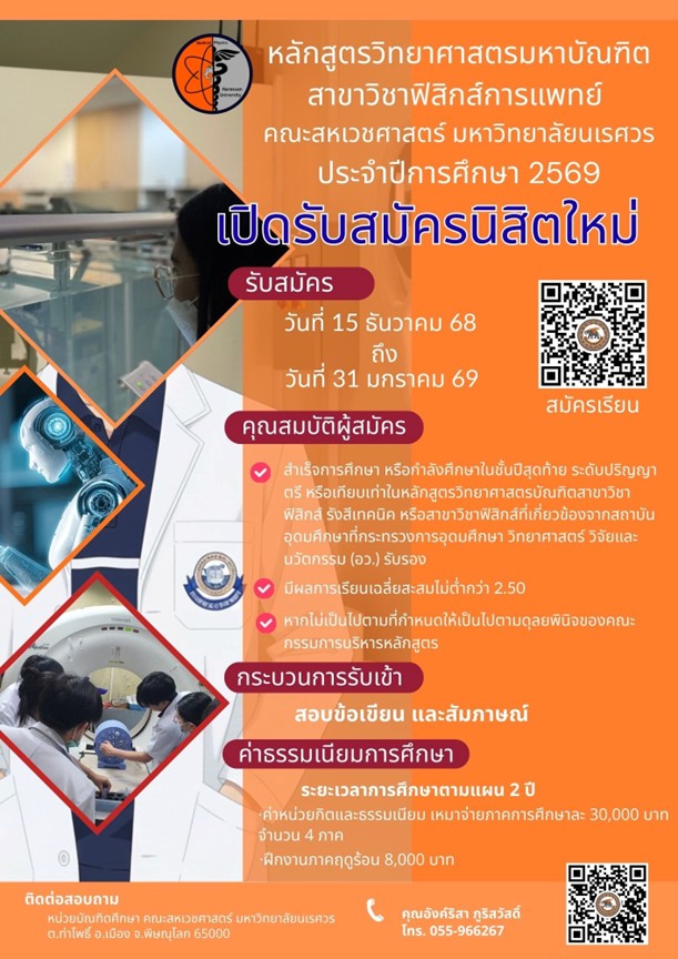 เฟซบุ๊กหลักสูตร วท.ม. สาขาวิชาฟิสิกส์การแพทย์ https://www.facebook.com/MedPhyNU