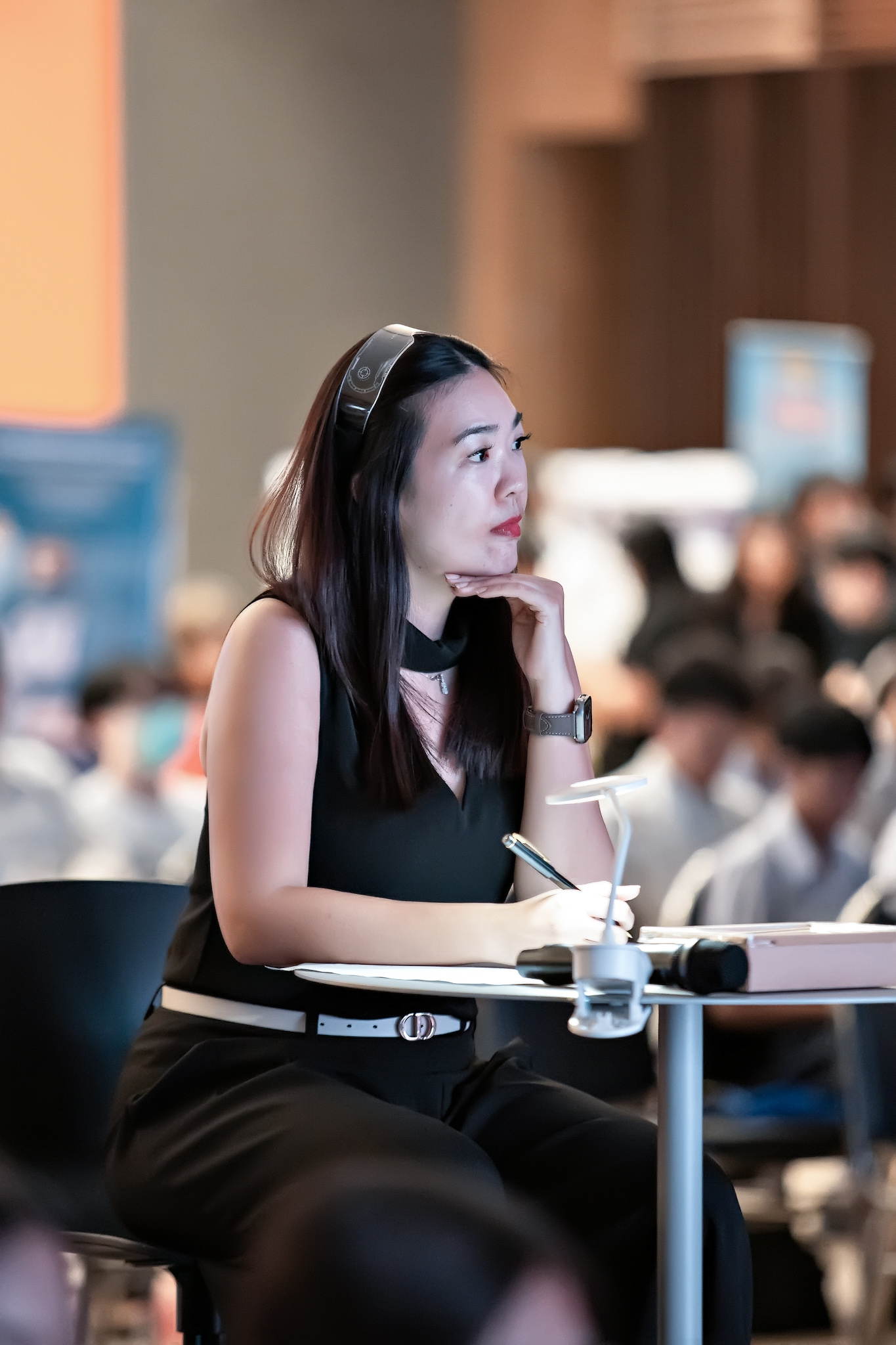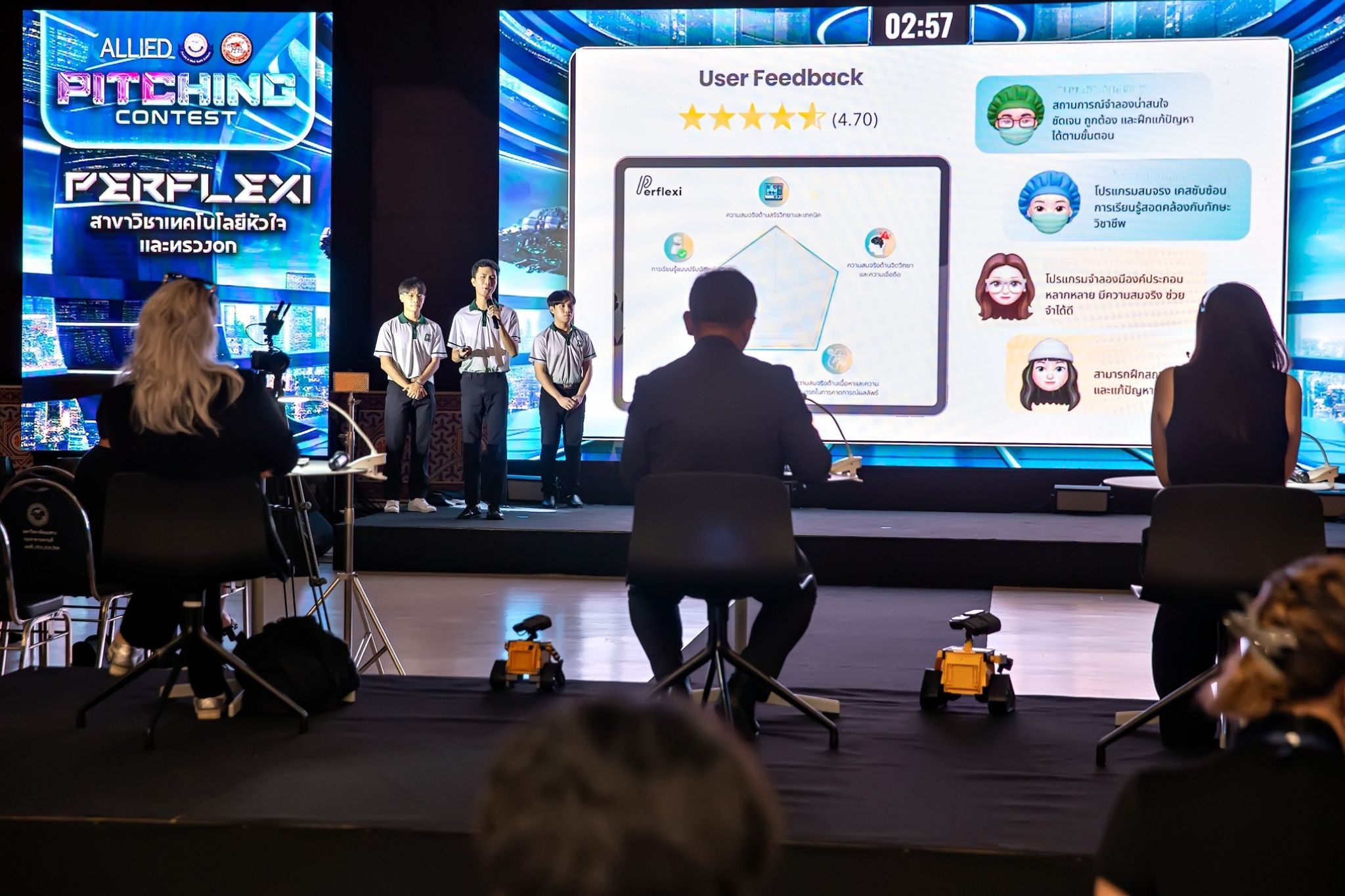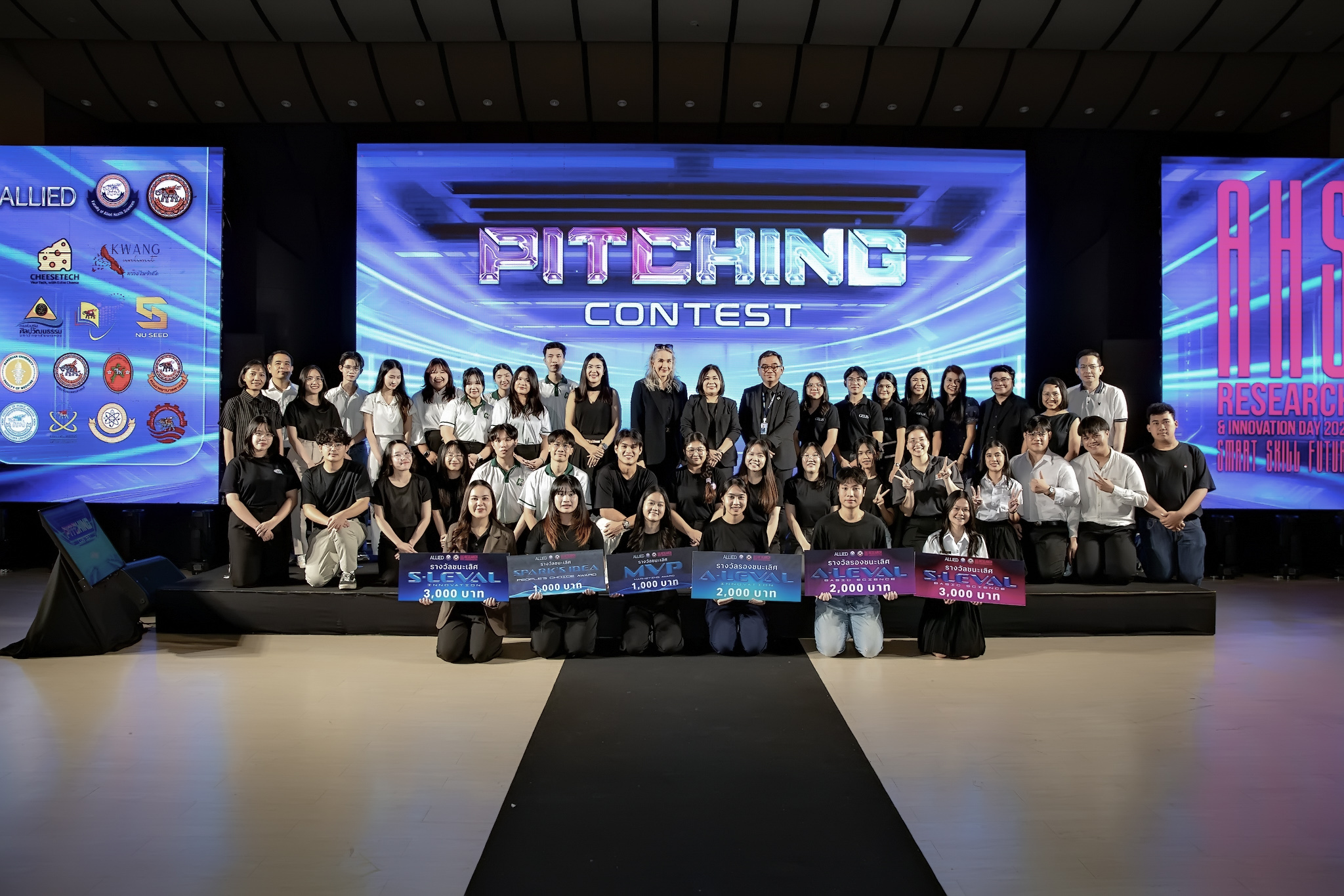 ไฮไลท์ของงานคือการแข่งขัน “Pitching Contest” ที่รวบรวมผลงานนวัตกรรมจากนิสิตคณะสหเวชศาสตร์ 10 ทีม ซึ่งผ่านการฝึกฝนอย่างเข้มข้นทั้งการนำเสนอ การเล่าเรื่อง การออกแบบสไลด์ และทักษะผู้ประกอบการภายใต้ระยะเวลาจำกัด
