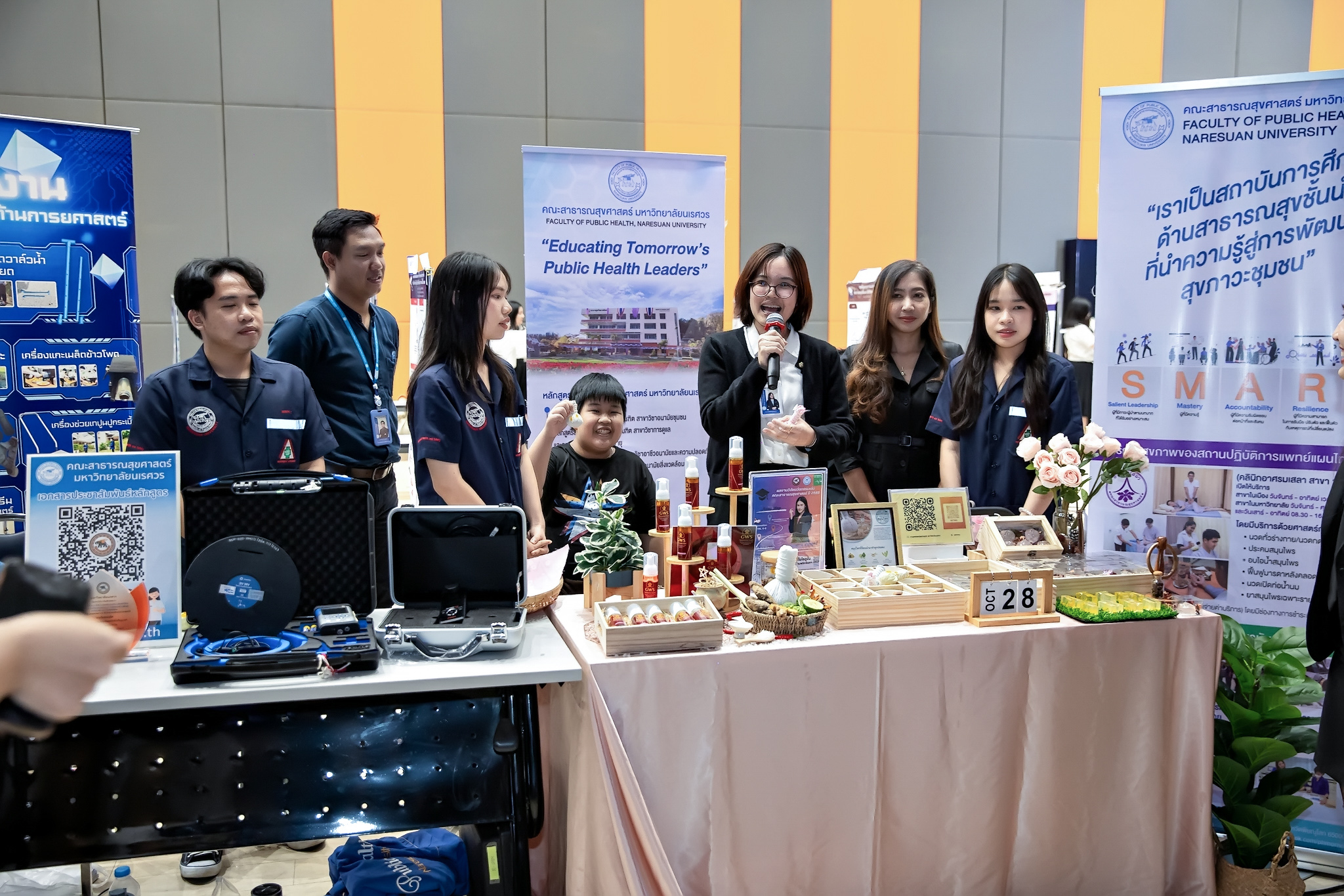 The Faculty of Allied Health Sciences expressed gratitude to all judges, as well as to the Health Science cluster faculties, Faculty of Engineering, Faculty of Science, and the Naresuan University Science Park, for their collaboration and exhibitions. Appreciation was also extended to Cheese Tech Co., Ltd. and Kwang Mai Jumkad Co., Ltd. for organizing interactive exhibitions, and to all faculty members, staff, and students who contributed to the success of the event.