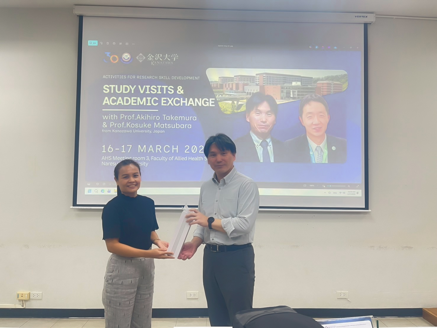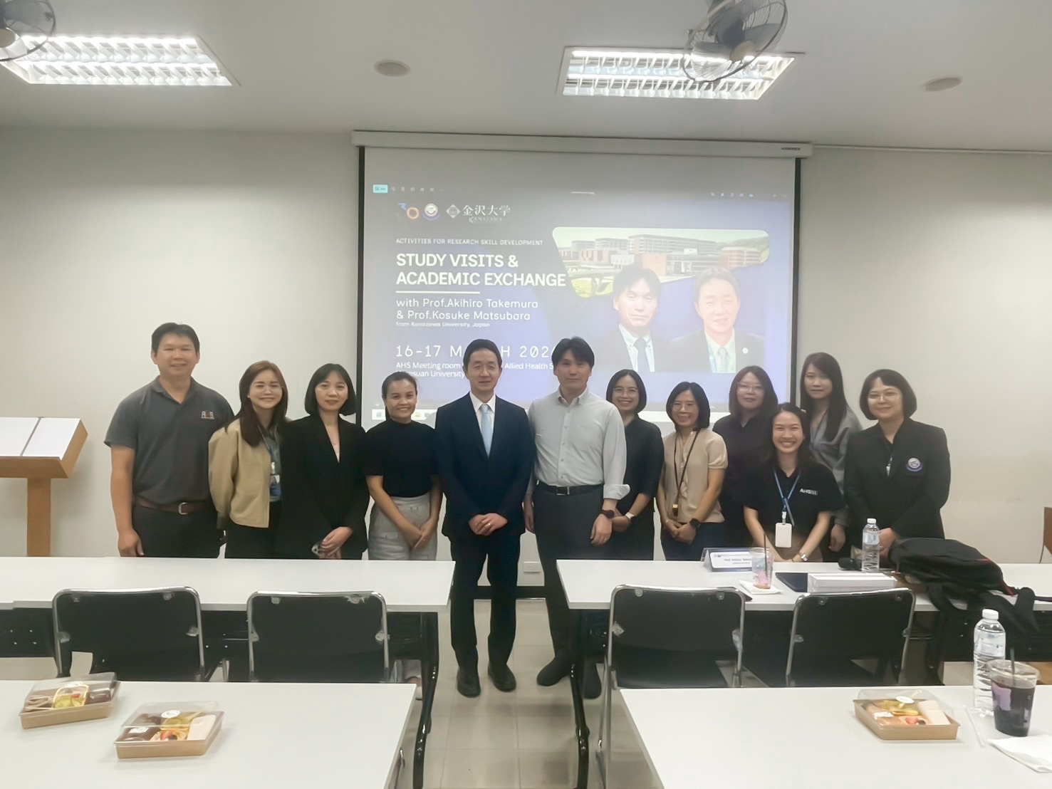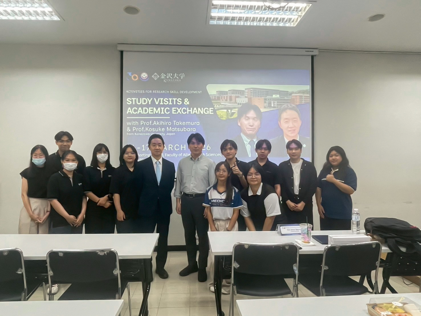The Faculty of Allied Health Sciences, Naresuan University, organized an academic visit and knowledge exchange program in collaboration with guest speakers from the School of Health Sciences and the Graduate School of Medical Sciences, Kanazawa University, Japan— Professor Akihiro Takemura and Professor Kosuke Matsubara —on March 16–17, 2026, at the Faculty of Allied Health Sciences, Naresuan University