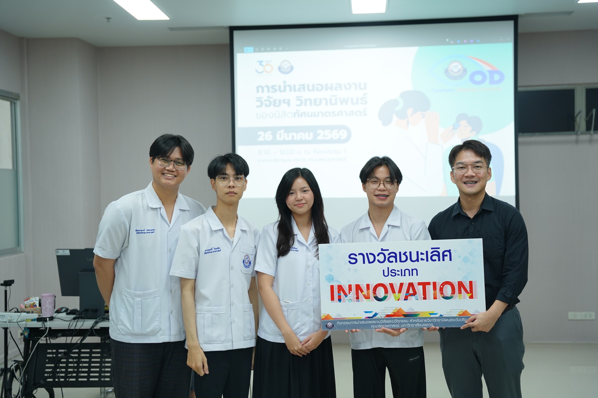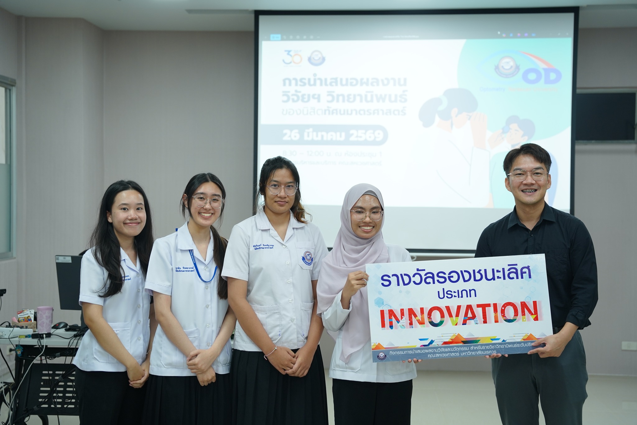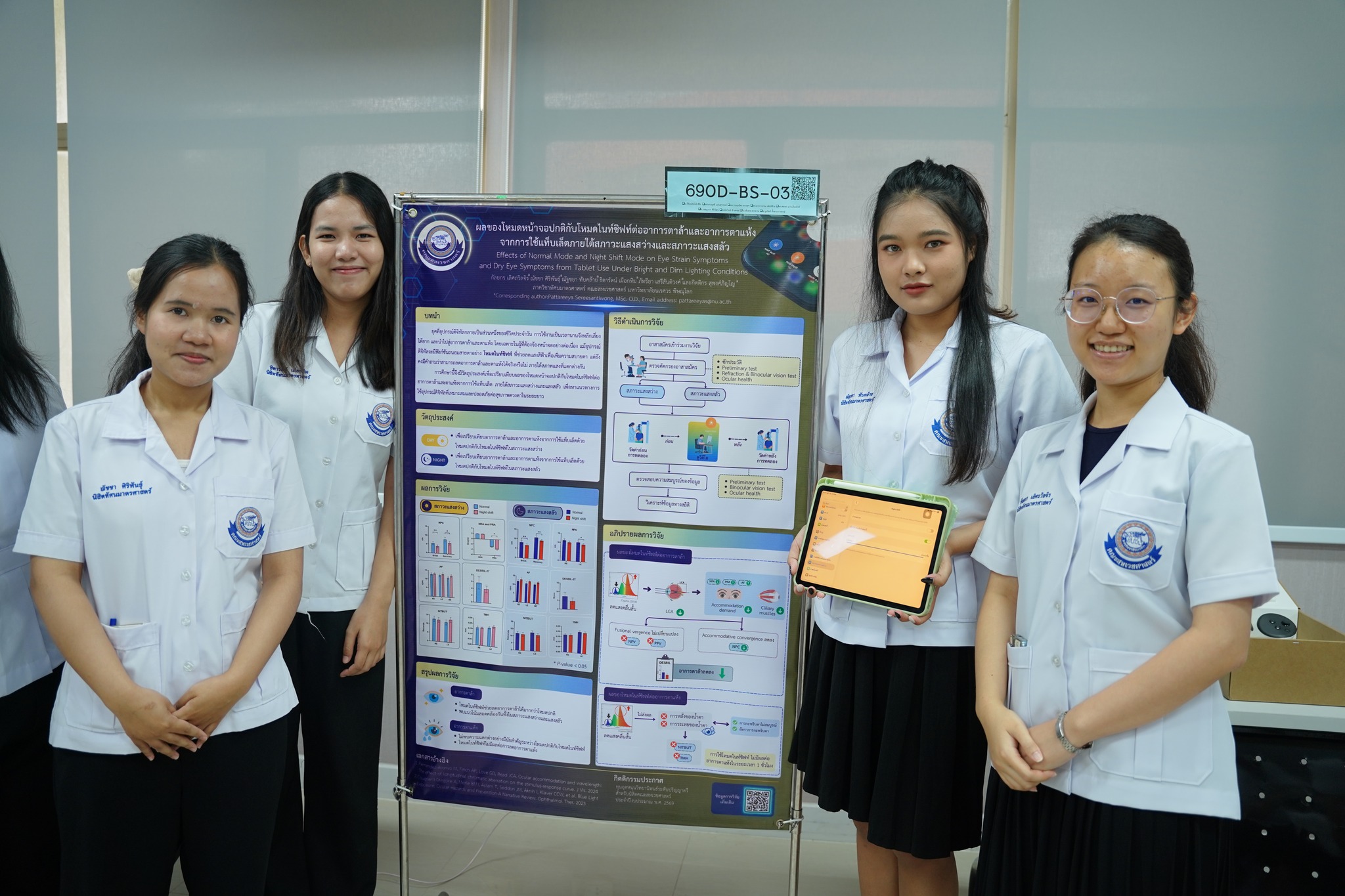 The Faculty of Allied Health Sciences, Naresuan University, organized an undergraduate thesis poster presentation for students in the Doctor of Optometry program on Thursday, March 26, 2026, from 08:30 AM to 12:00 PM at Meeting Room 1, Administration and Service Building, Faculty of Allied Health Sciences.