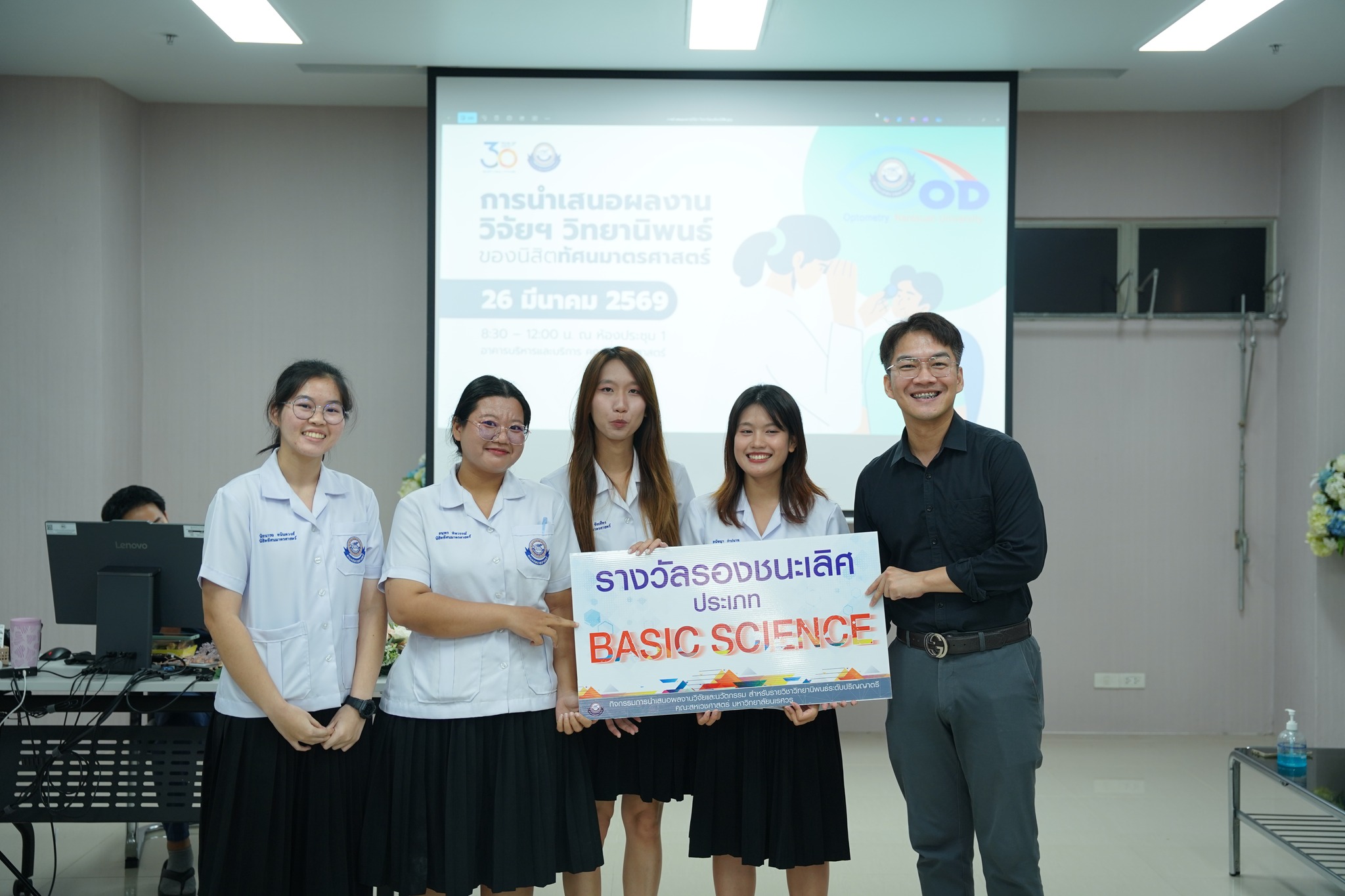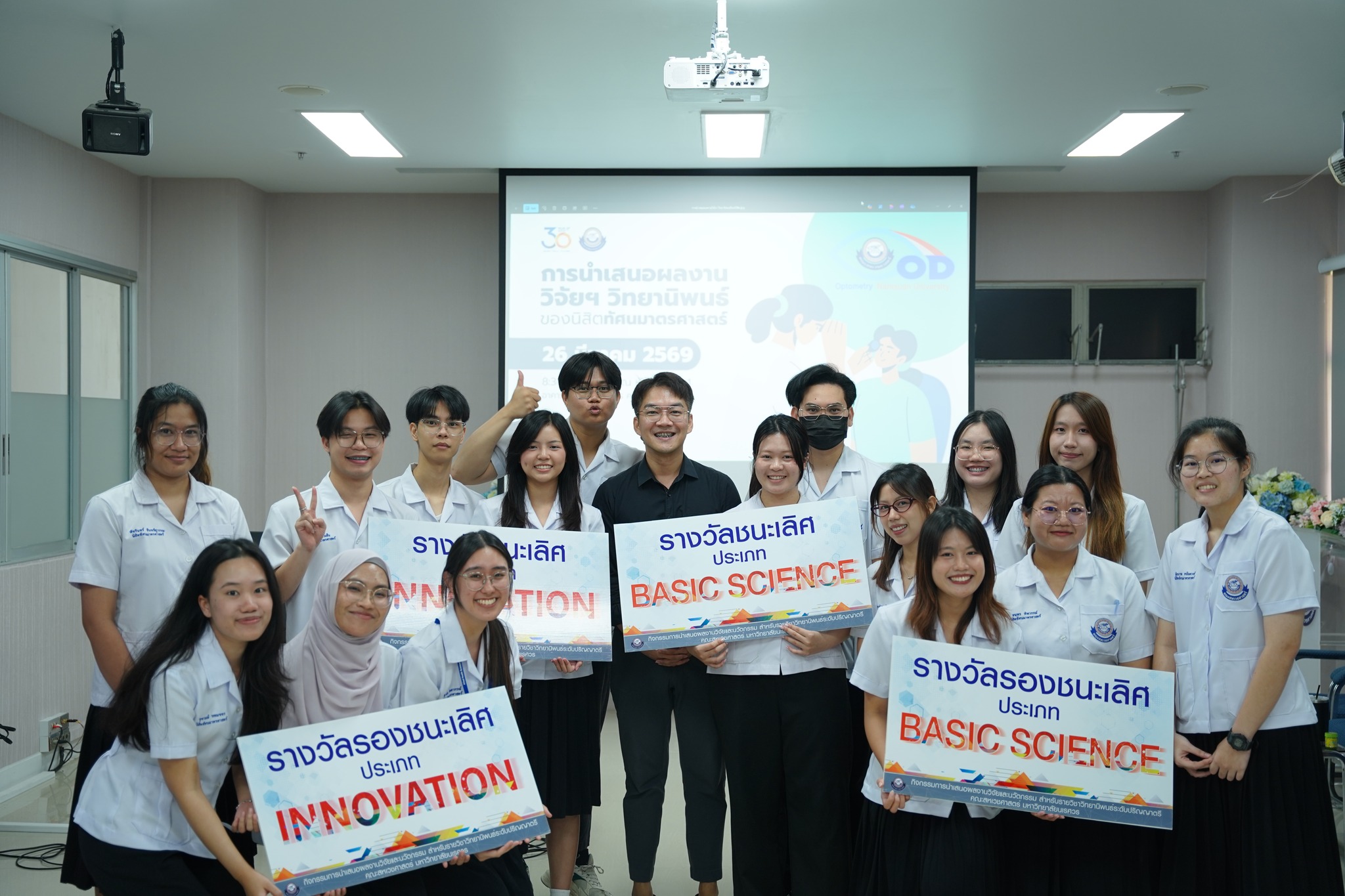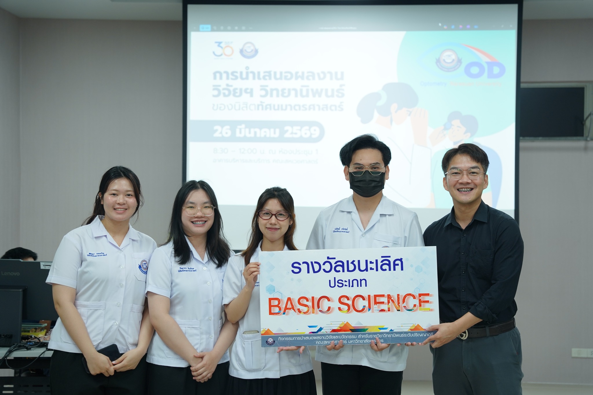 The Faculty of Allied Health Sciences, Naresuan University, organized an undergraduate thesis poster presentation for students in the Doctor of Optometry program on Thursday, March 26, 2026, from 08:30 AM to 12:00 PM at Meeting Room 1, Administration and Service Building, Faculty of Allied Health Sciences.