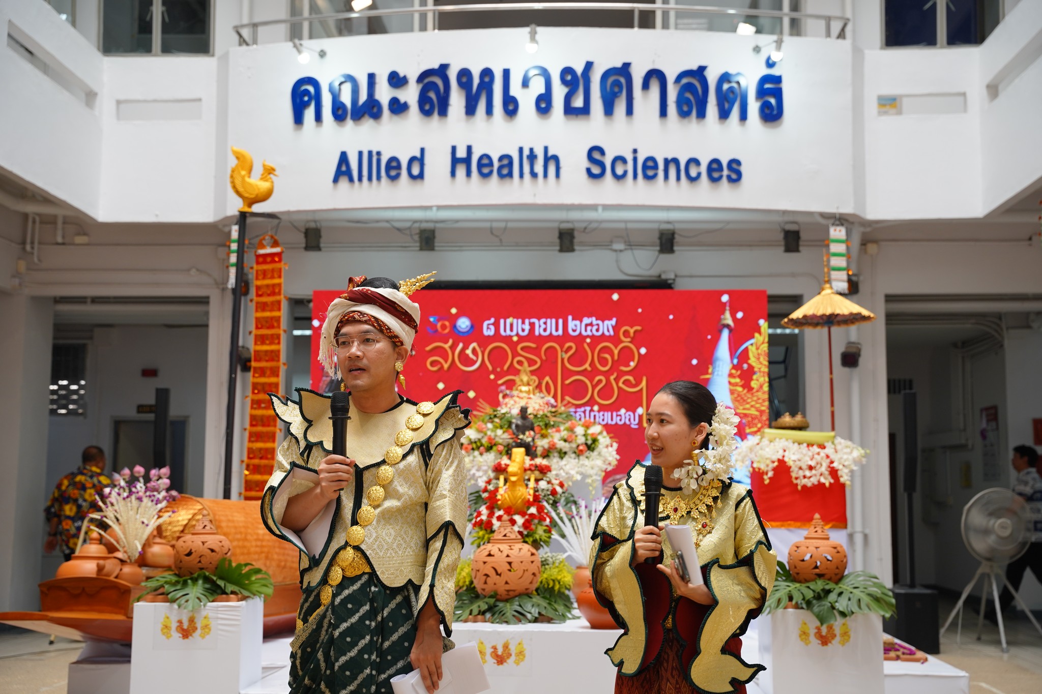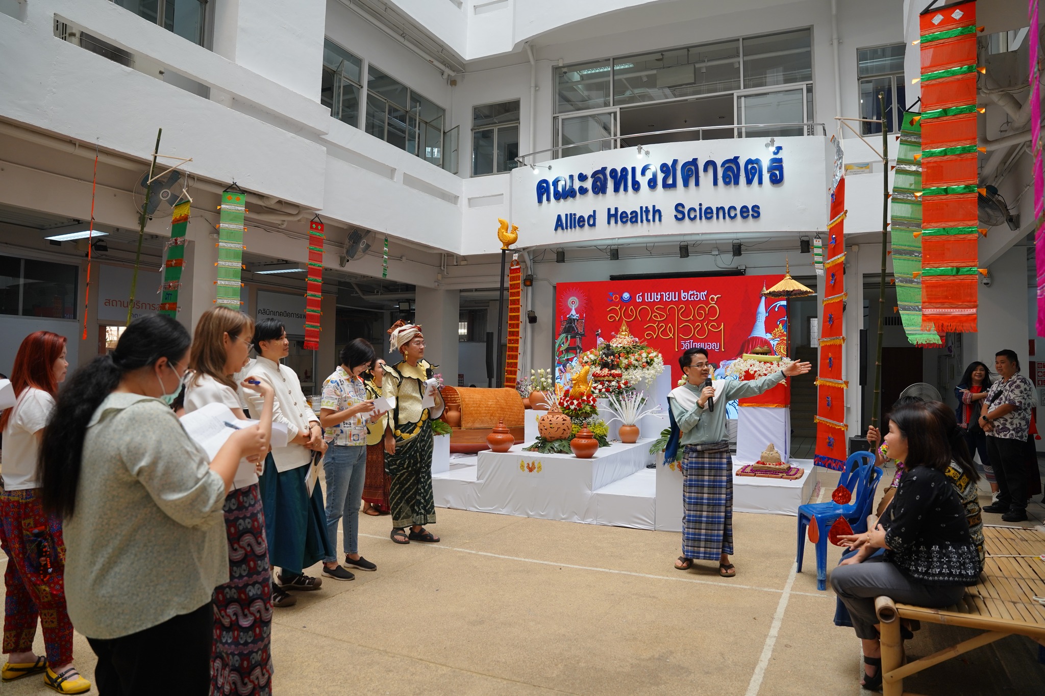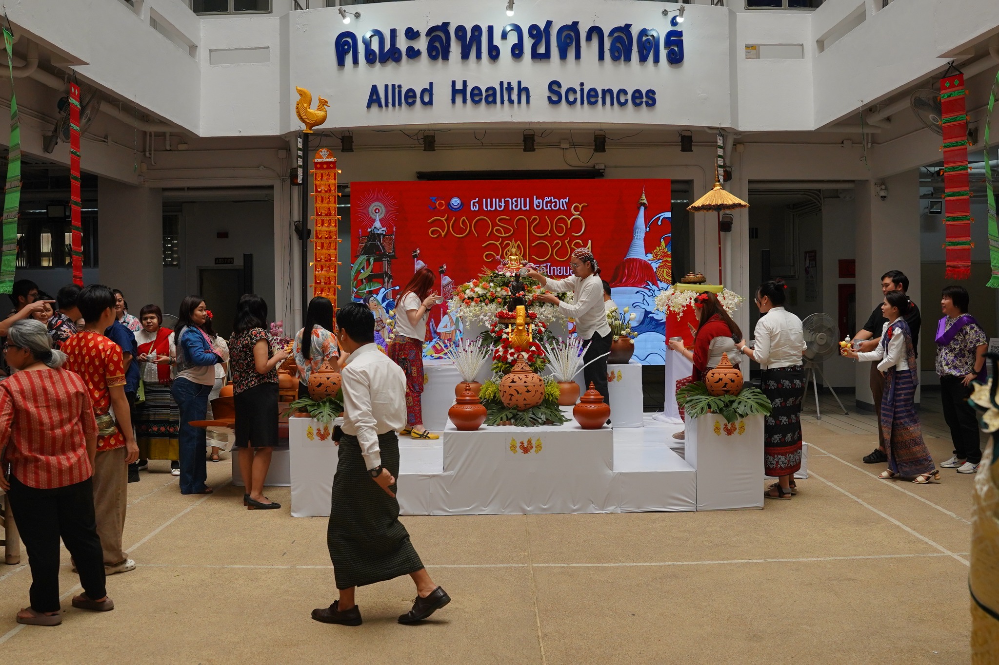 The Faculty of Allied Health Sciences, Naresuan University, organized the “AHS Songkran: Thai–Mon Cultural Celebration” on Wednesday, April 8, 2026, at the Ground Floor Hall of the Faculty. The event aimed to preserve the rich traditions of the Thai Songkran festival while strengthening relationships among faculty members and staff.