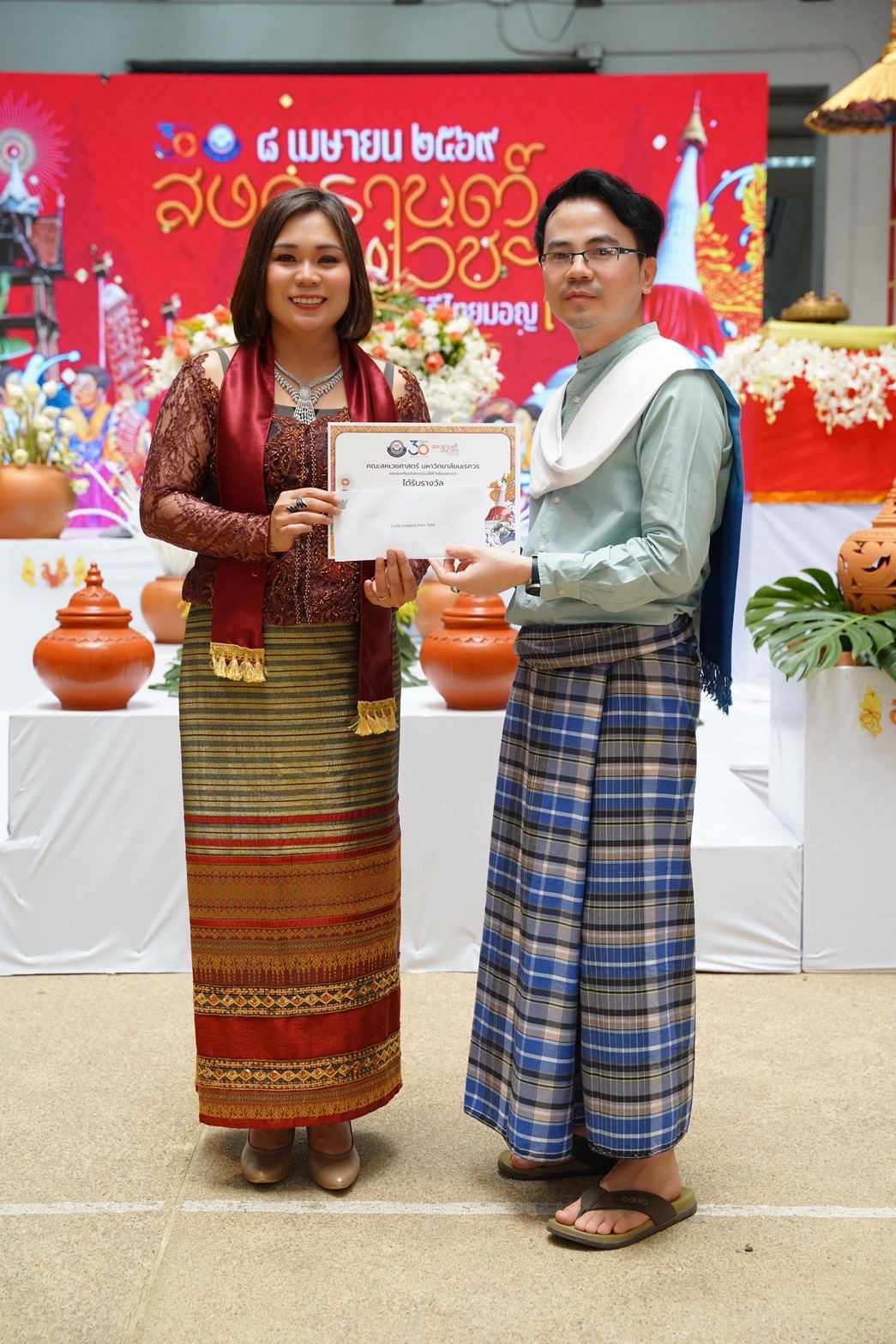 การมอบรางวัลการแต่งกายตามวิถีไทยมอญ ที่ผู้เข้าร่วมต่างแต่งกายอย่างงดงามและมีเอกลักษณ์