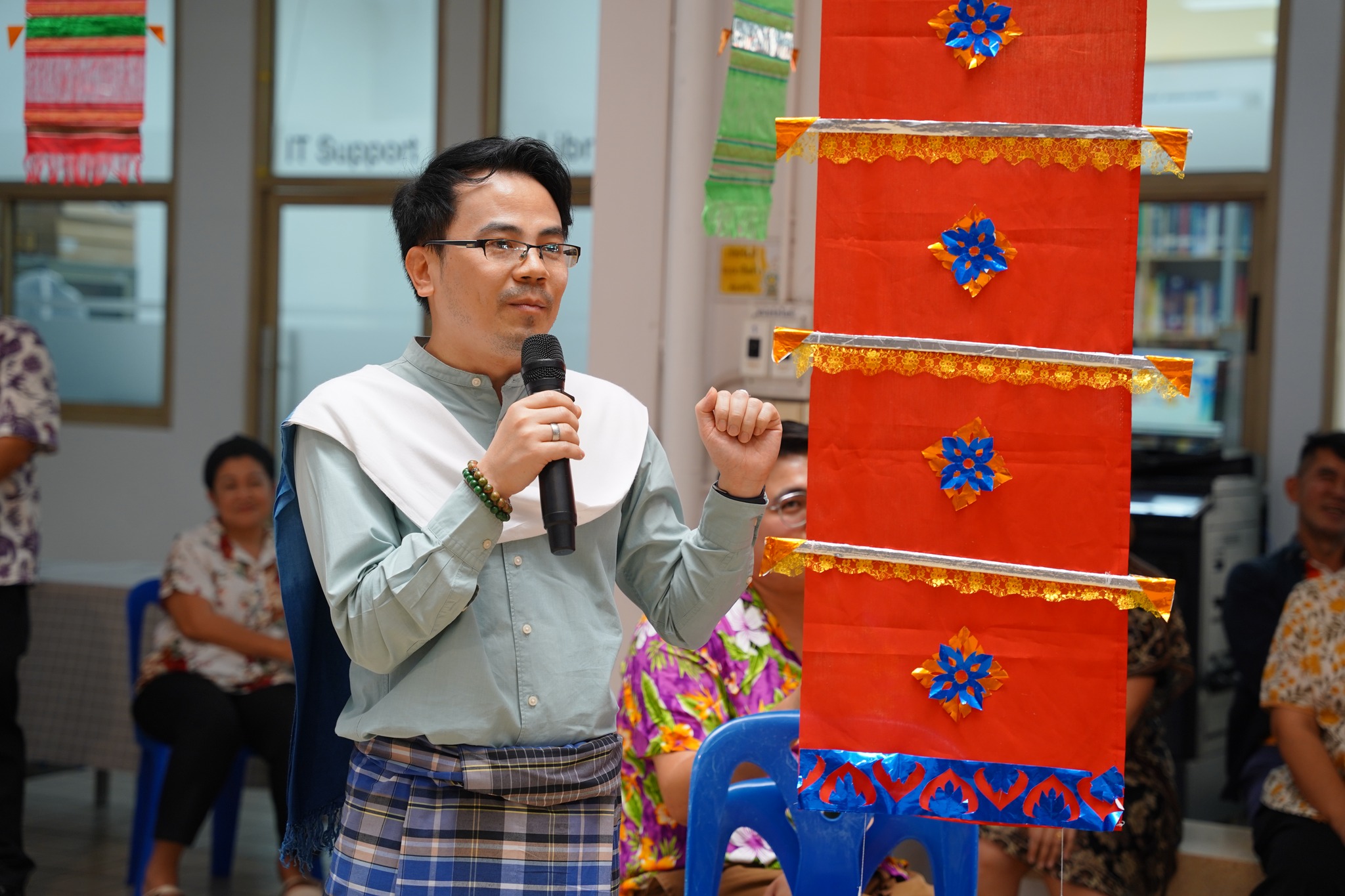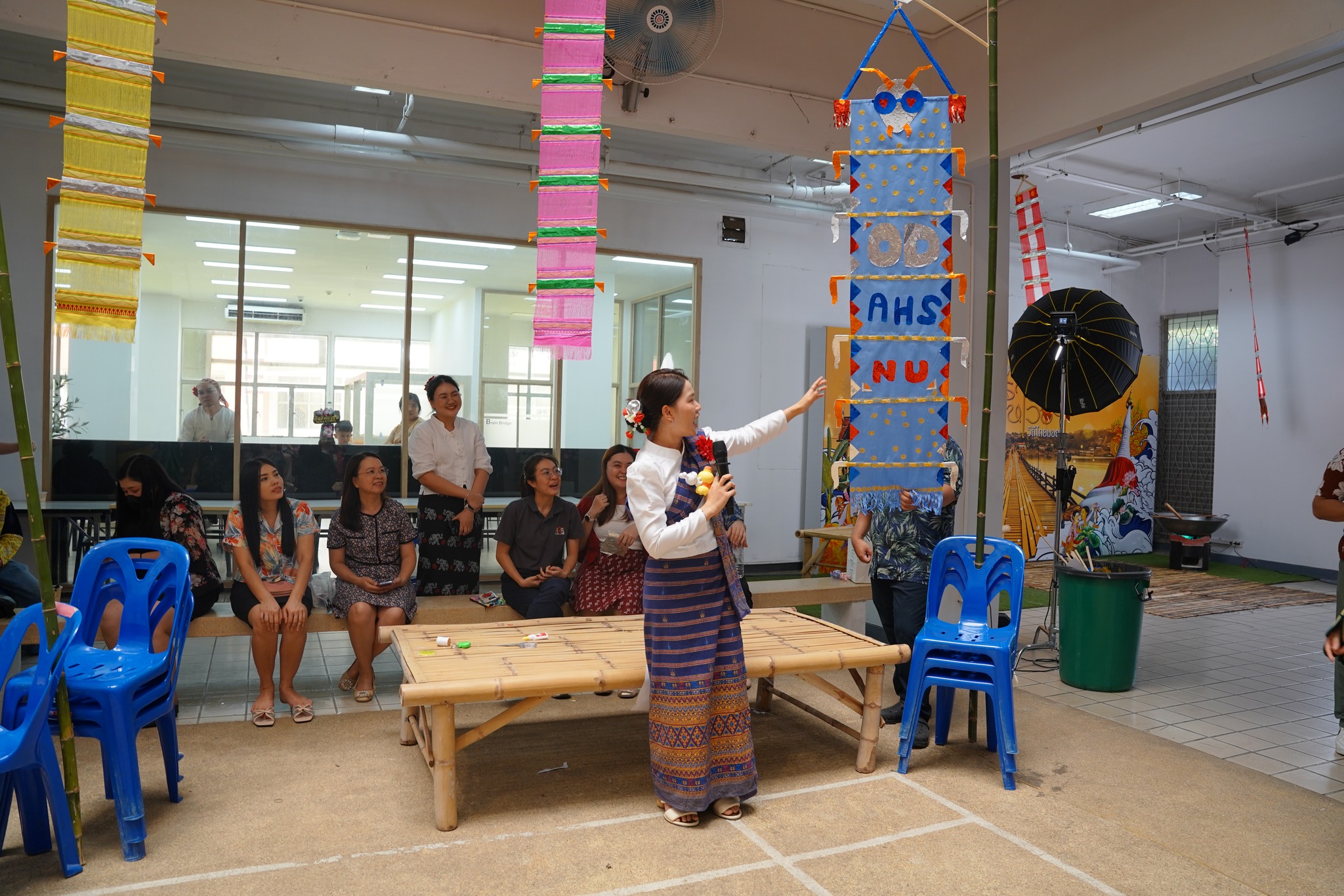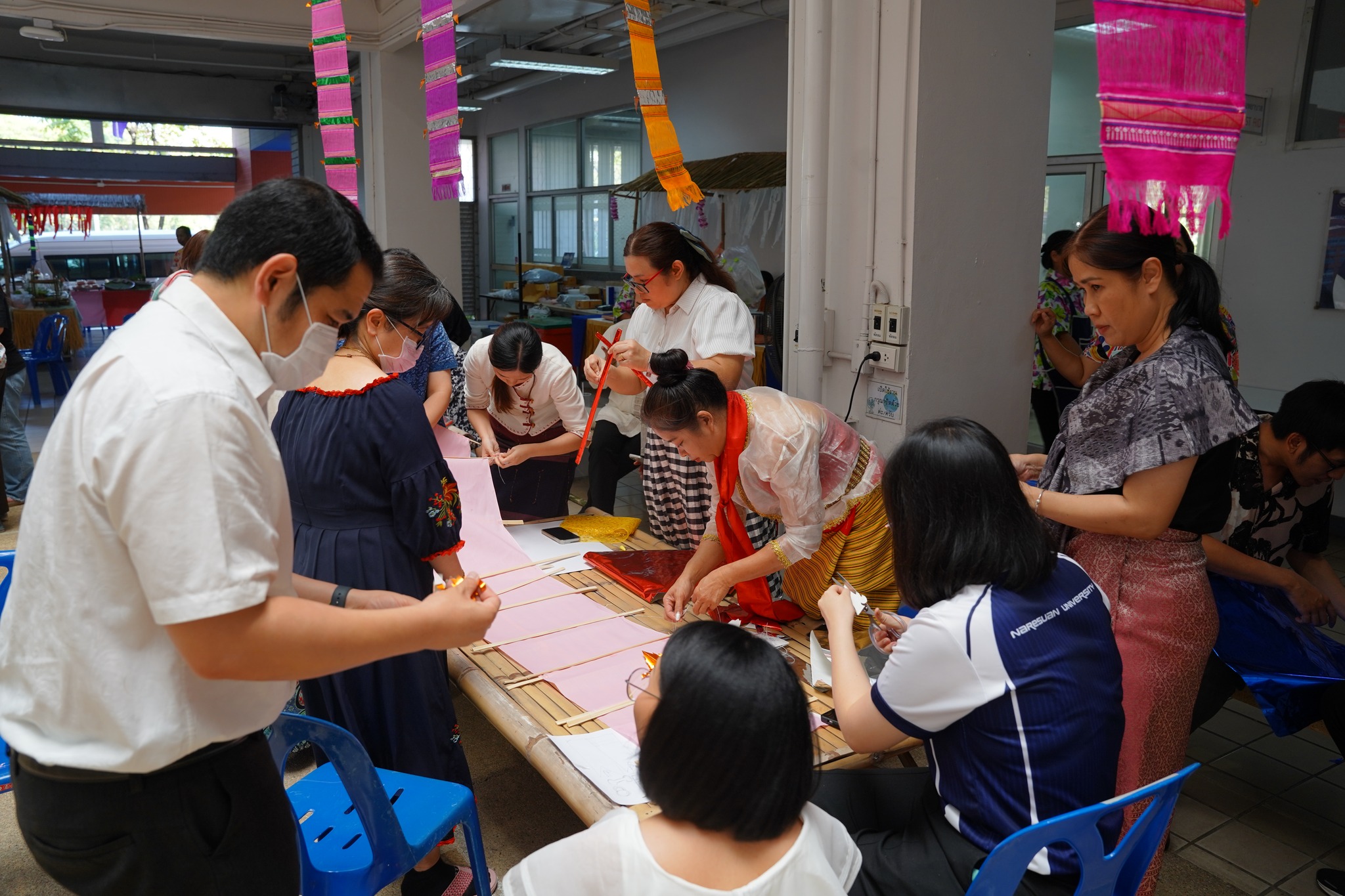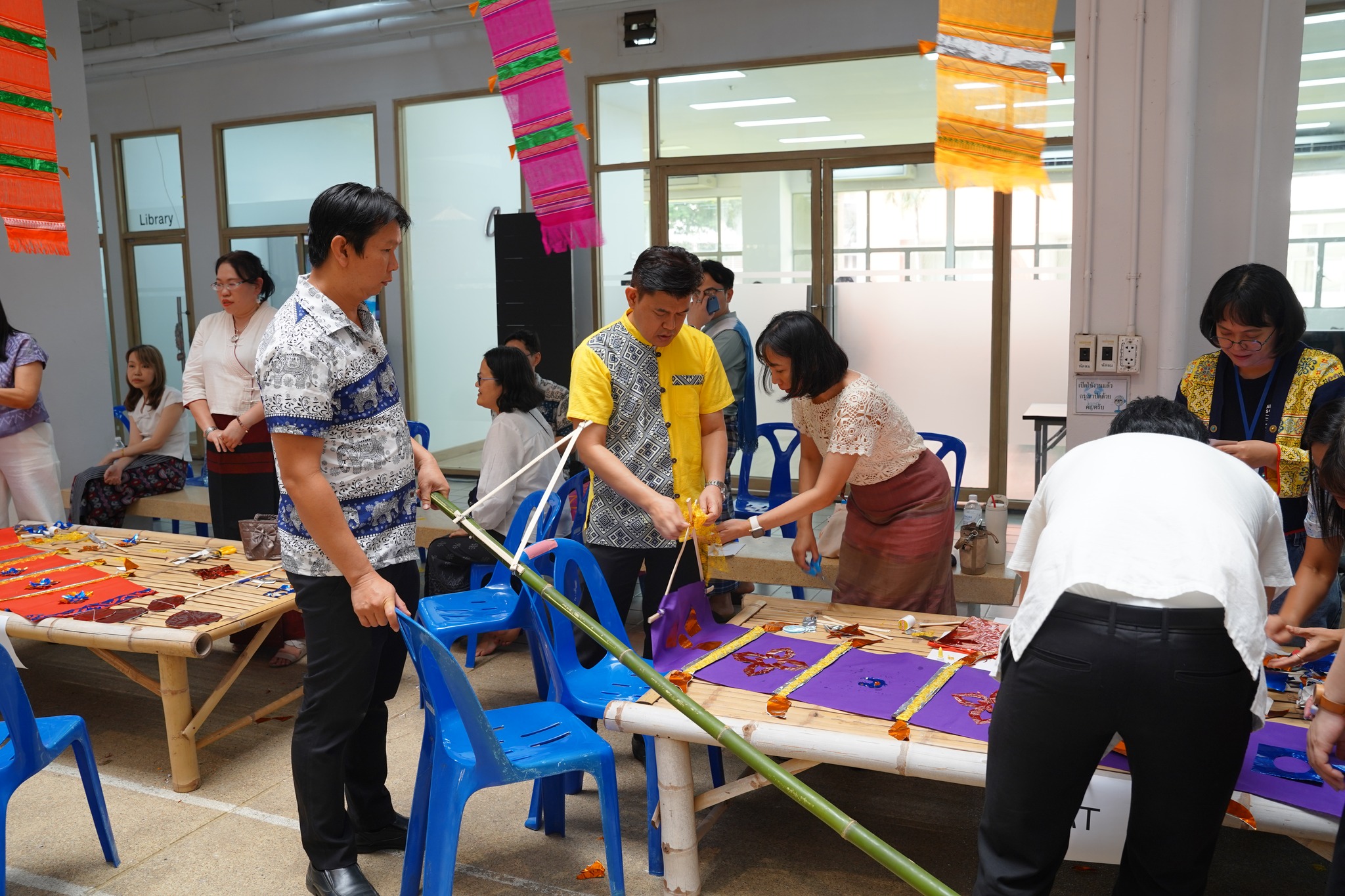 Takhab (traditional centipede flag) crafting competition, organized by the Office of the Secretariat and graduate students, showcasing local wisdom and craftsmanship