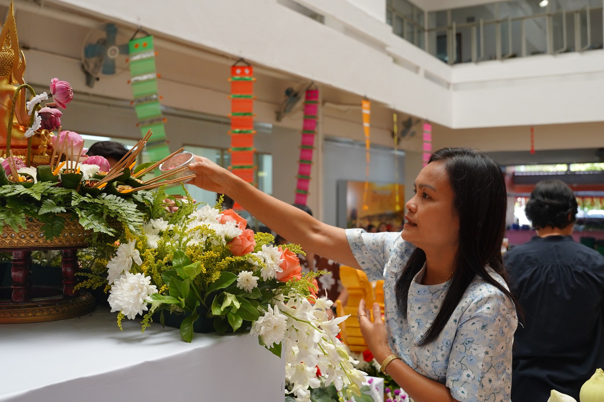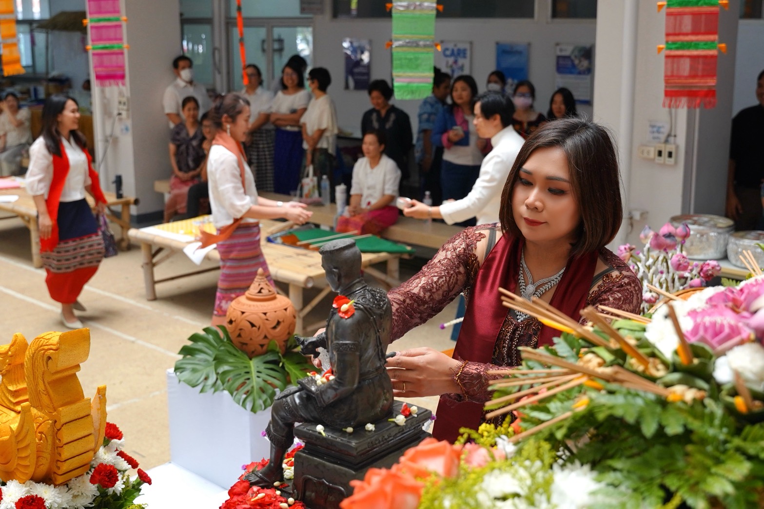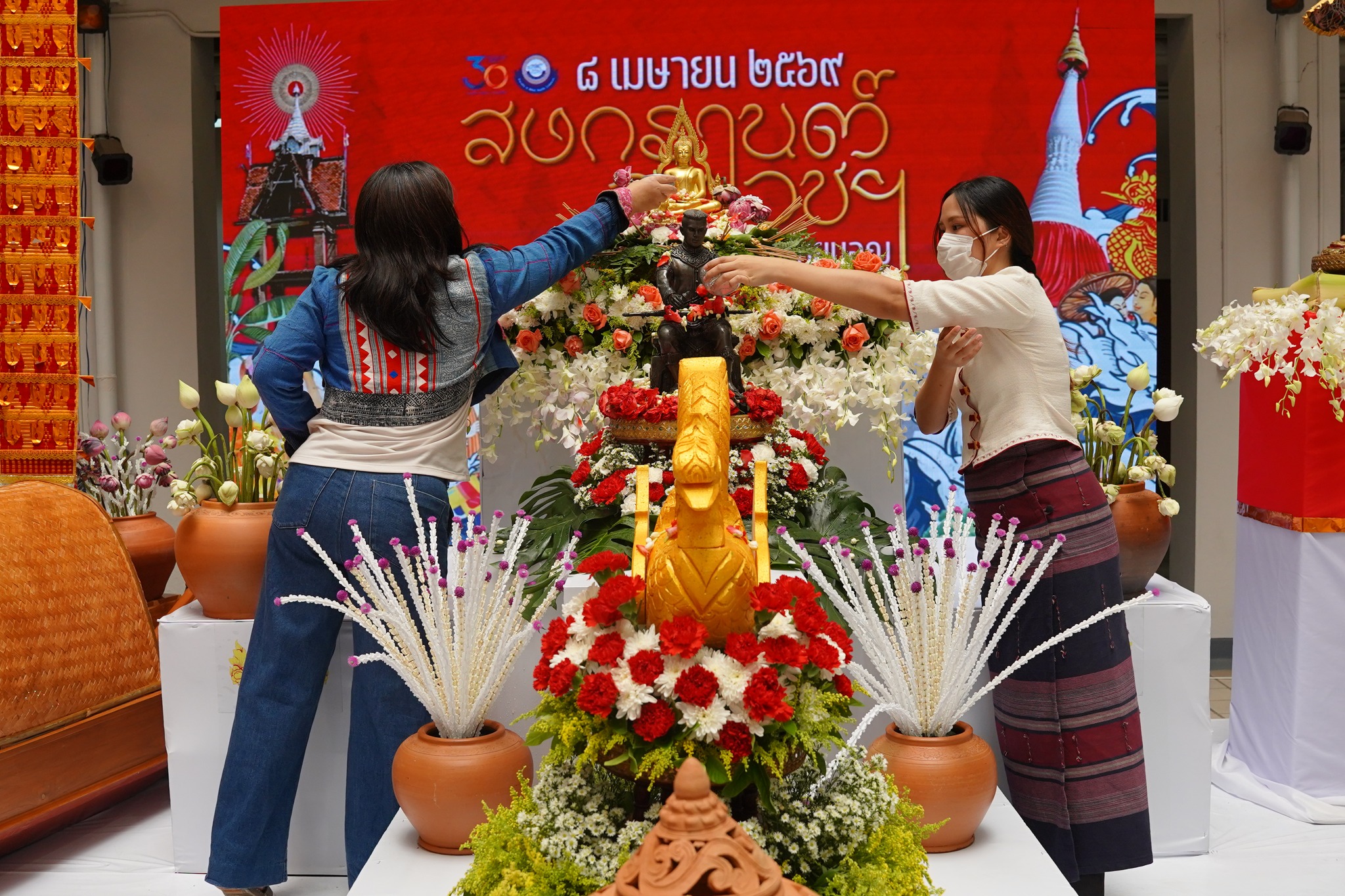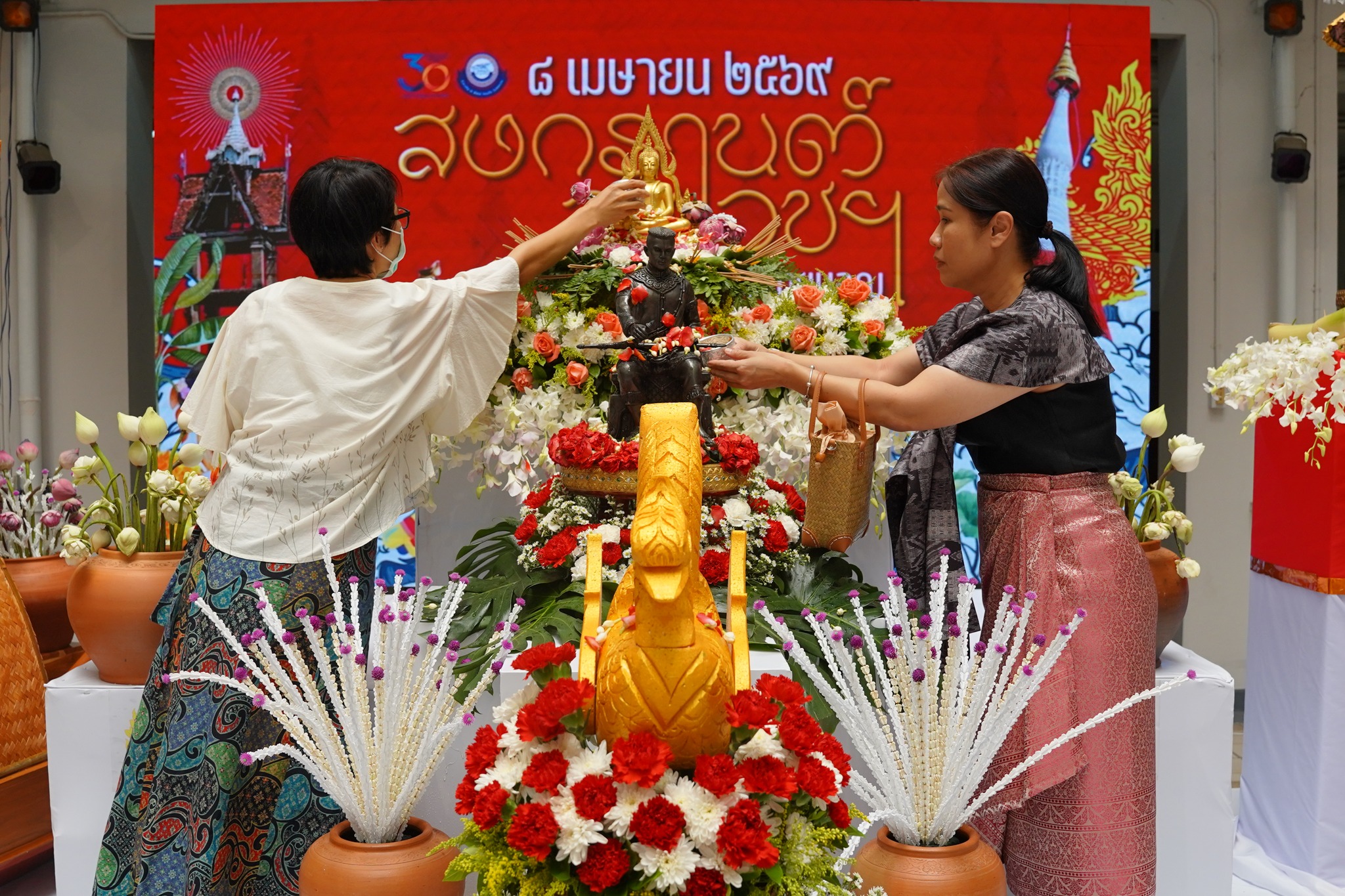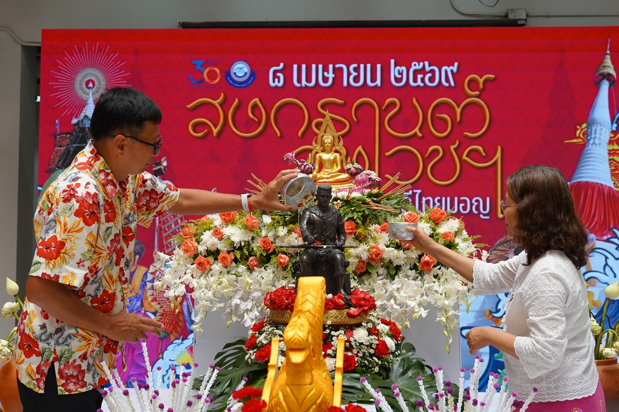 This was followed by the water blessing ceremony for the Phra Phuttha Chinnarat Buddha image and the statue of King Naresuan the Great, performed to bring auspiciousness for the Thai New Year.