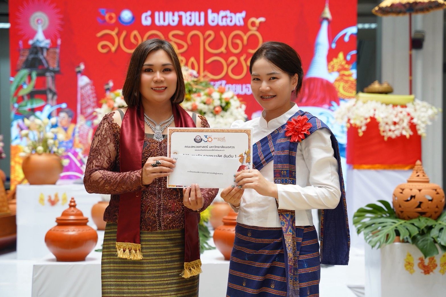 Thai–Mon traditional costume awards, where participants elegantly presented cultural attire with distinctive identity
